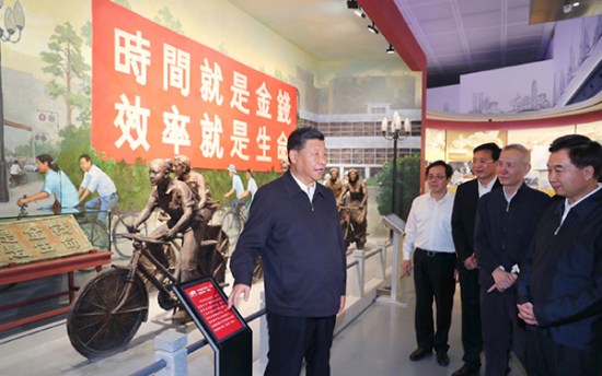 10月24日,中共中央总书记、国家主席、中央军委主席习近平来到深圳市福田区,在深圳市当代艺术馆与城市规划展览馆参观了“大潮起珠江——广东改革开放40周年展览”。随后又前往深圳前海考察,参观了深圳市万科前海企业公馆展览厅。