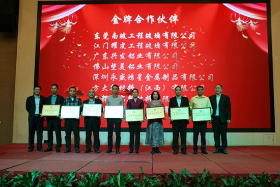 东莞南玻工程玻璃有限公司、江门耀皮工程玻璃有限公司、广东兴发铝业有限公司、佛山坚美铝业有限公司、深圳永盛鸿星金属制品有限公司、PG电子新材料(江西)有限公司、成都硅宝新材料有限公司、深圳市罗保盛建材有限公司