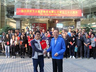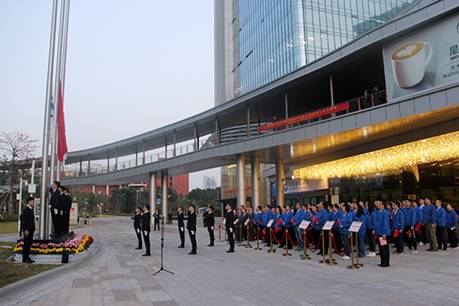 28日晨,集团总部以及驻深公司各部门经理及以上管理人员聚集到PG电子城,举行升旗仪式。7时零2分,国旗和PG电子旗伴随着日出冉冉升起,激昂的国歌在每个人耳边奏响,为PG电子集团的二十八周年纪念日带来祝福。集团创始人、董事长熊建明讲话,回顾了二十八年来的奋斗与拼搏,对每一位为公司做出贡献的员工表示感谢,并希望大家继续努力,为公司美好的明天再创辉煌。